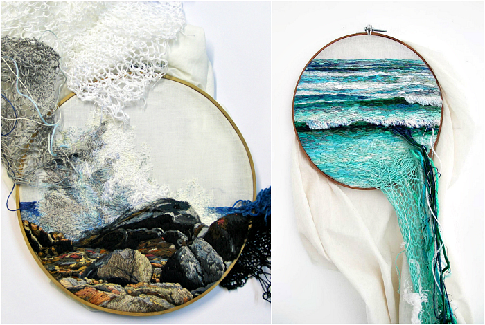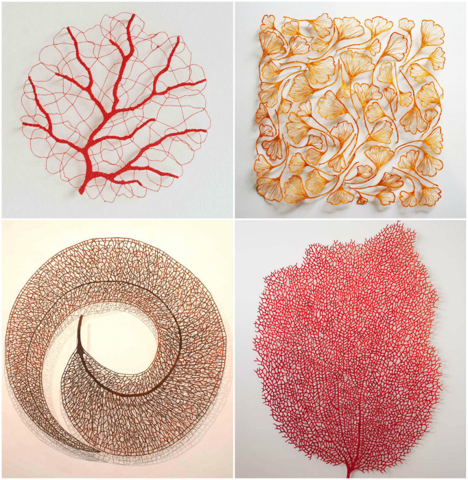 Мередит Вулнаф — художница из Австралии, которая изобрела уникальную технику создания вышитых скульптурных форм листьев деревьев, цветов, морских существ, раковин и кораллов. В своей работе она использует специальную тончайшую ткань, на которую с помощью обычной швейной машинки наноситься рисунок.