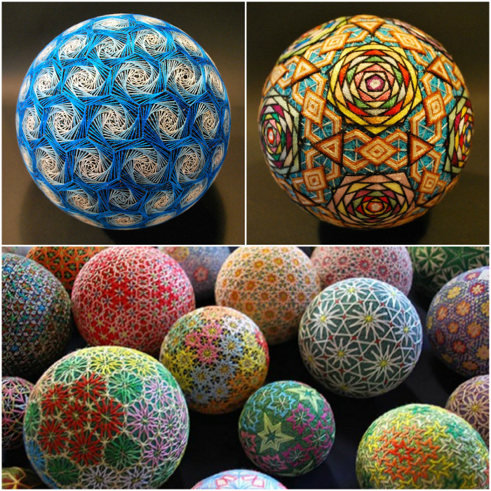 Вышитые шары темари.