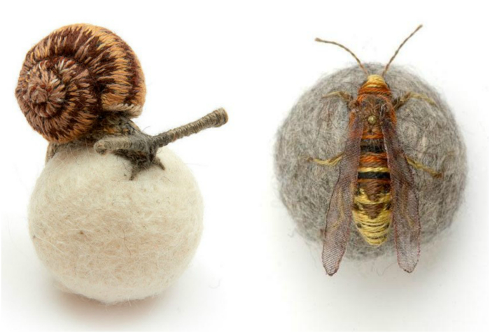 Британка Клэр Мойнихан создаёт коллекцию оригинальных и необычных фигурок улиток и различных насекомых из войлока, украшенного объемной вышивкой.