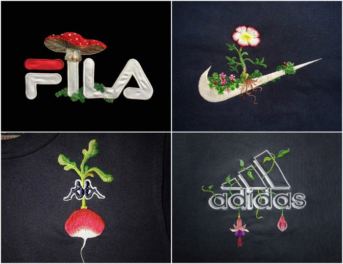 Художник Джеймс Мерри украшает известные логотипы оригинальной вышивкой, таким образом, превращая одежду из масс-маркета в нечто стильное и уникальное.