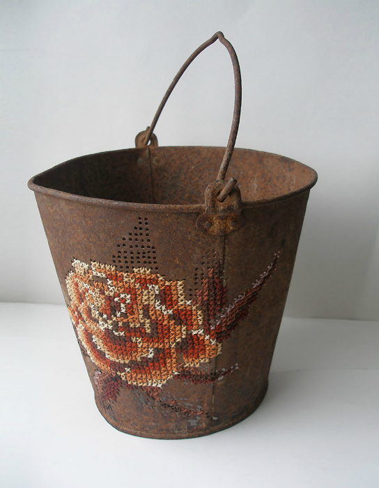 Кто бы мог подумать, что обыкновенное металлическое ведро можно превратить в нечто великолепное и необычное. Но латвийская художница Северия Инсираускайте доказала обратное, украсив старое невзрачное ведро искусной вышивкой.